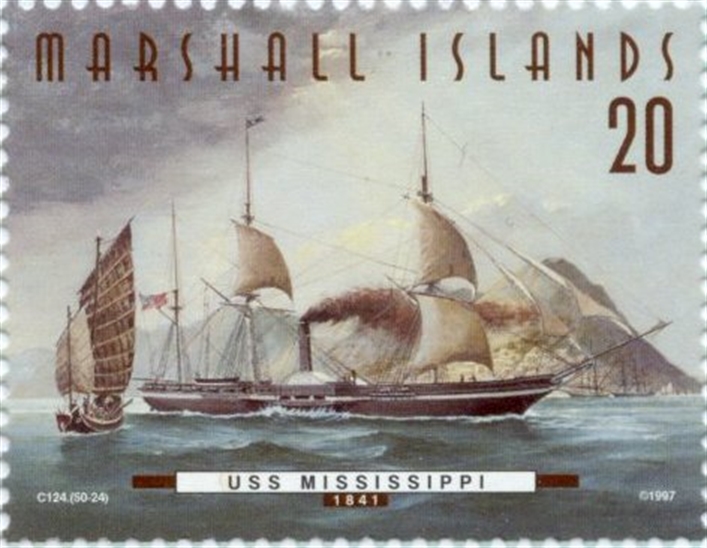 After several years of service in the Home Squadron, during which she performed experiments crucial to development of the steam Navy, MISSISSIPPI joined the West Indian Squadron in 1845 as flagship for Commodore Perry. During the Mexican War, she took part in expeditions against Alvarado, Tampico, Panuco, and Laguna do los Terminos, all successful in tightening American control of the Mexican coastline and interrupting coastwise commerce and military supply operations.