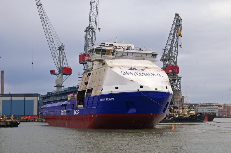 VITUS BERING is an upgraded version of SCF SAKHALIN. a similar icebreaking platform supply vessel built at Helsinki in 2005. Several modifications have been made to the original design, including adding a fourth main engine, but the hull form is nearly identical. The most noticeable external difference is the covered foredeck, which will protect the mooring equipment from icing.