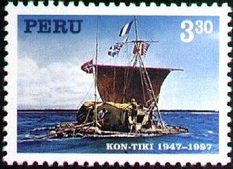 In 2022, the Peruvian Post issued a souvenir sheet in honor of the 75th anniversary of Thor Heyerdahl's voyage on the Kon-Tiki balsa raft.