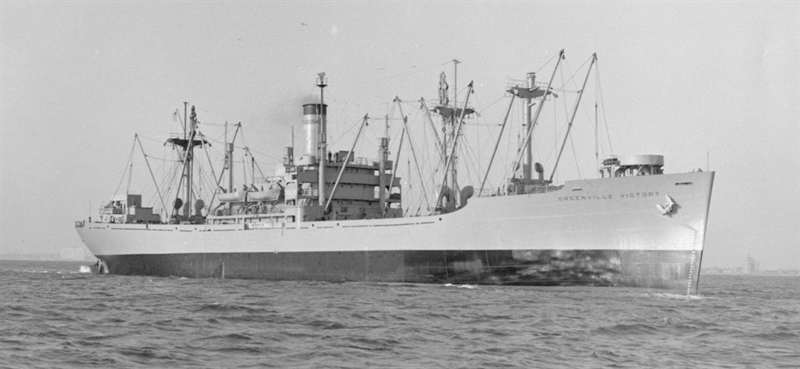 Manned by a civilian crew, Greenville Victory, from 1950 to 1953, operated in the Atlantic Ocean and the Caribbean, carrying military cargo to French, English, and German ports; Guantanamo Bay; and the Panama Canal Zone.