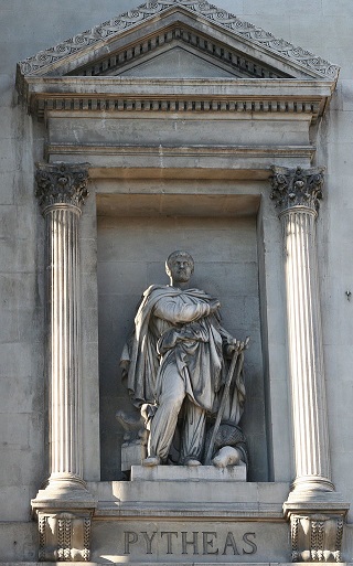 Statue of Pytheas outside the Palais de la Bourse , Marseilles .