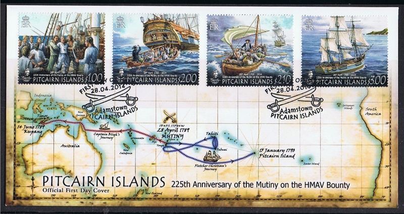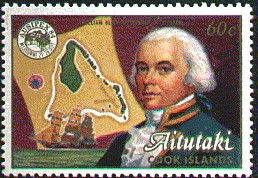 The Aitutaki stamp shows Captain Bligh but the ship depict, carried four yards and is the replica BOUNTY of 1962.)