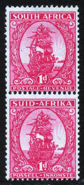 Mr C. Gonin has sent us a newspaper cutting, which states that the model used for the design of the current 1d stamp, was a 24-gun Dutch man-of-war of a much later period than Van Riebeeck’s ship, ‘DROMEDARIS’, which it is meant to represent. The model ship was found in a Dutch church and sent to President Kruger, who forwarded it to the Transvaal Museum for safe keeping, whence it went to the New Museum, Pretoria