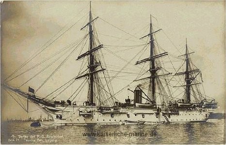 Built in 1878-'79 by A.G. Vulkan, Stettin, #80, 05-'80 towed to Kiel for terminal equipment at the Kaiserliche Werft.