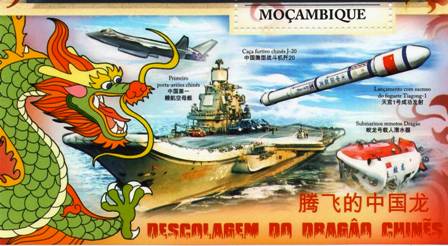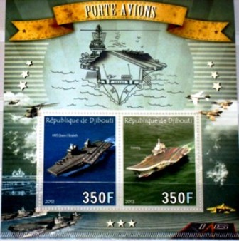 Mozambique 2011 sg?, scott? in margin of sheet ( the inscription gives that she is the first Chinese aircraft carrier, but according Mr sitnikov is she the Russian ADMIRAL KUZNETSOV (063) aircraft carrier a sister of the JIAOLONG, I got a photo image from him where it shows clearly that she is the Russian ADMIRAL KUZNETSOV.