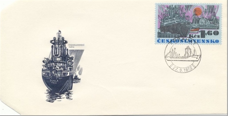The Dukla, a cargo vessel, was launched under the name of Solidaritat, at the Warnowwerft Yard, at Warnemunde, in 1958. Gross tonnage is 6,507 tons; net 3,781, and deadweight 10,000 tons. Dimensions: 518ft. 4in. o.a. x 67 ft. 6in. x 27ft. 6in. draft. Four 8-cylinder oil engines with electric coupling and gearing by MaSCh. Halberstad provide main propulsion. The Czechs changed the ship's name to Dukla to commemorate the Second World War battle when the Czechoslovak units with the Soviet Army crossed the Dukla Pass and returned to their native soil. She was sold in 1965 to the Chinese People's Republic and her name is now Hangzhou. I regret I cannot interpret the Chinese name, but Jiskra is "Spark"; Mir is "Peace"; while Kosice and Kladno were called after the Czech cities of these names. SG2057