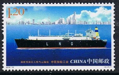 China issued in 2015 four stamps to honour their shipbuilding industry, one of this stamp depicts a Liquefied Natural Gas (LNG) tanker.