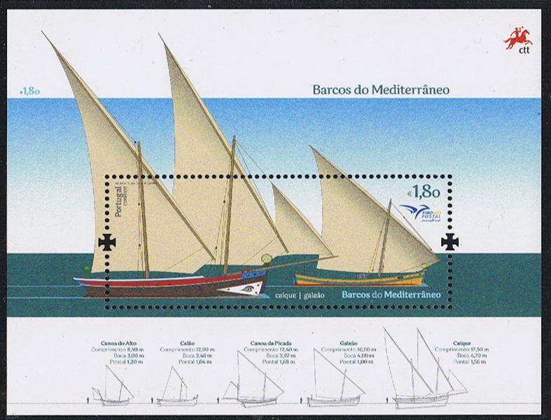 The five boats depicted in this stamp issue portray Mediterranean traditions, not only regarding shipbuilding techniques but also in what concerns their origins.