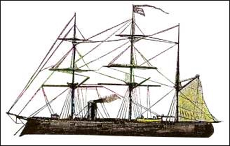 Barque rigged. Under canvas she could make 11 knots.