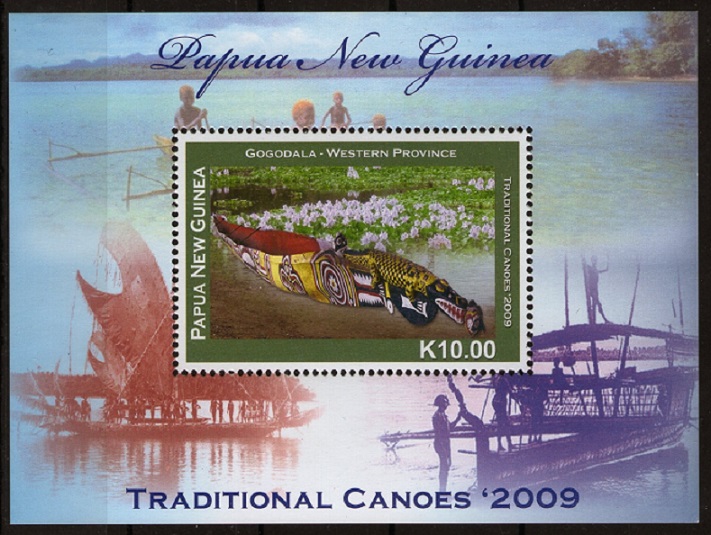 Gogodala is the name of an ethnic/language group from the Middle Fly District of the Western Province of Papua New Guinea, one of about a thousand different cultures that make up Papua New Guinea, each with its own languages and lifestyles. Canoes are a very important part of the Gogodala culture. "The Gogodala use of dugout canoes for everyday activities such as fishing, collecting firewood, carrying house posts, transporting sago and garden produce, people also characterize themselves as metaphorically 'being inside', or standing inside, their clan canoe." (Wilde 2004) Because they are located along a river, canoes are an important means of both transport and hunting. The fact that the tribe is located along a source of water means that they are able to get along easily as well as fish for a source of food. The network of rivers and water channels provide an excellent way of getting around and in fact the origins of the Gogodala are that their ancestors traveled to the area in large canoes. The Gogodala are able to trace their lineage back to these original clans and even more specifically, they trace their lineage back to the canoes that they used to travel there. In the old days, Gogodala warriors of the Balimo area of Western Province used canoe racing to settle conflicts - arguements over land, women and sago. The rivalry was often fierce. The race draws strong young men from nearby villages to enter the race where between 40 and 60 men line up a mono-hulled brightly coloured canoe measuring over 30 metres and paddel standing up. The canoe racing is a warrior's war game played on water with paddle-power instead of spears, clubs and bows and arrows. The annual Gogodala canoe festival take place in Balimo, Western province. The festival will showcase Gogodala war canoes, the 40m craft renowned for their decorations and artworks depicting animal figures representing various clans. Often bow of canoe depicting crocodile as the crocodile as a source of income, meat and has been part of the people since time immemorial. The war canoes of Gogodala play important roles for the many communities located near the sea and waterways, according to the organisers, the loss of canoes from the lifestyles of Papua New Guineans will be a loss of an important cultural identity.