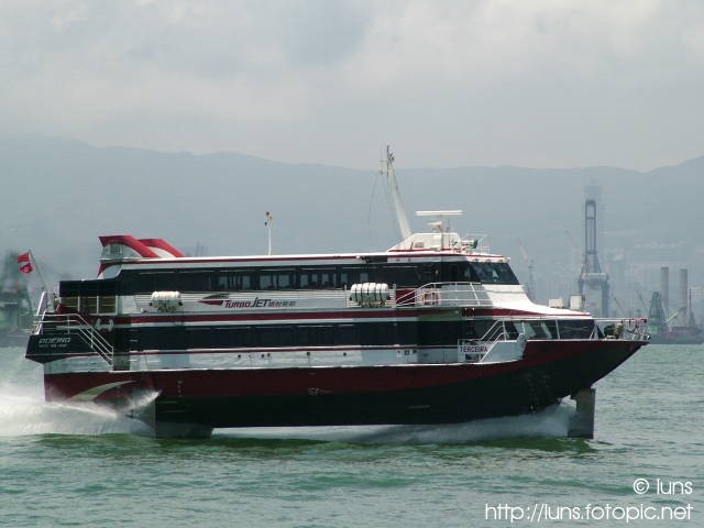 Aluminium Alloy TGT Hydrofoil Ferry, type 'Jetfoil 929', Gt:329,Nt:225, Loa:30,10m. Lbpp:23,93m. Boa:9,50m. B.hull:8,54m. D:2,60m. Draught:1,50m. 2 Gas Turbines General Motors:7400 hp. (5443 kW.) 2 water jet propulsion units, 43 kn. pass:278, IMO.7910008.