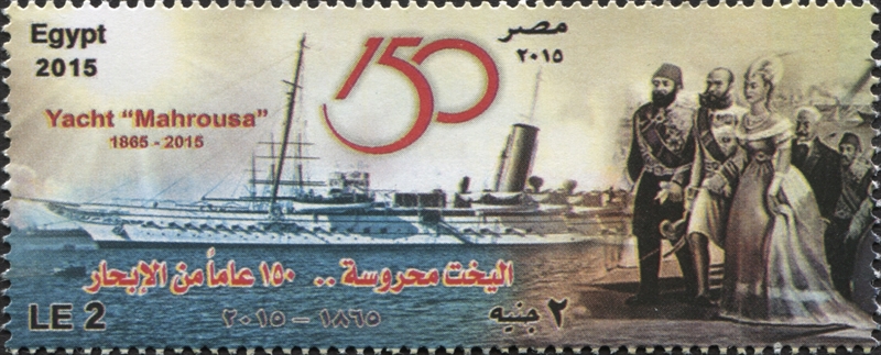For the 150th Anniversary of the yacht MAHROUSA, Egypt issued one stamp 1n 2015, which shows the yacht as it is today.