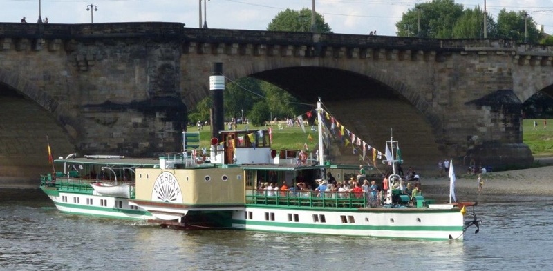 1986:Partial completion of the comprehensive overhaul. The ship is displayed in static fashion at Dresden Terrassenufer, as part of the 150 year anniversary of steam navigation on the Elbe.
