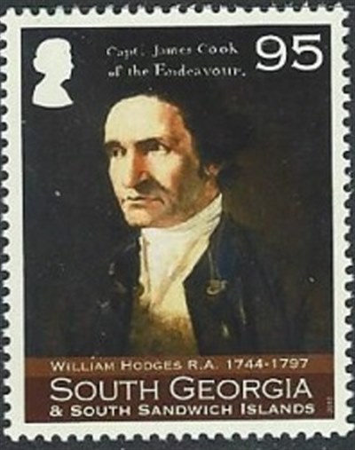 The 95p stamp features Hodges' portrait of Captain Cook.