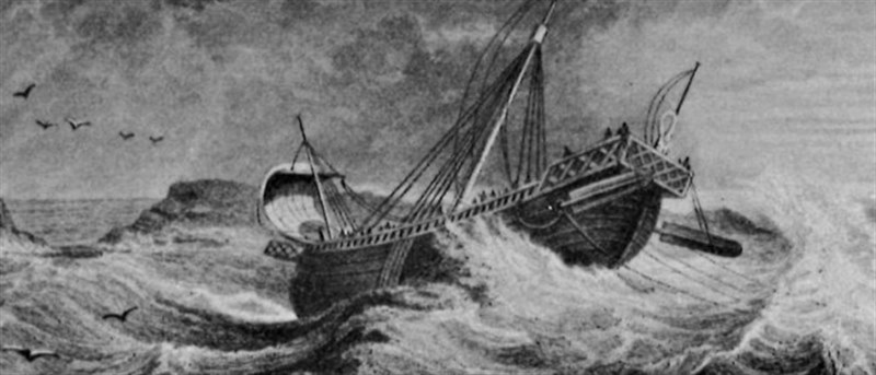 Then his guard Julius a centurion found another ship what was sailing to Italy, not much is given on her details in the Bible but it is believed that she was a Roman grainship from Egypt bound for Italy, most probably a “corbita” a Roman merchant ship, of which is given that she could carry in the first century AD up to 400 ton. Estimate length 25m and 6.7m wide.