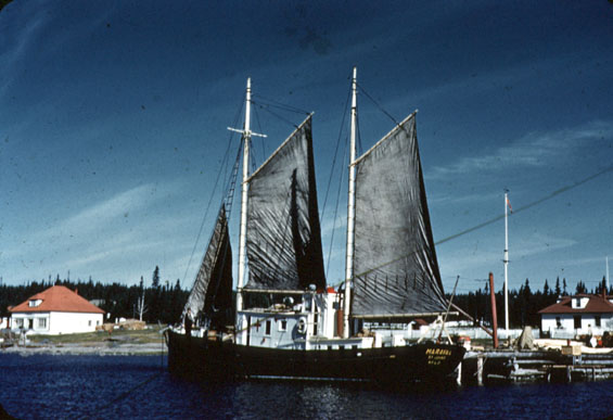 The new schooner MARAVAL was built on a yard in Thomaston, Maine for the International Grenfell Association during 1928-1929.