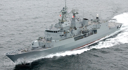 'Anzac' class frigate, displacement:3,600 tons full load, L:117,95m. (387') B:14,93m. (49') Draft:3,96m. (13')