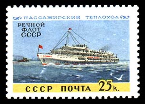 KARL MARX. River boat. Built by VEB Matthias-Thesen-Werft, Wismar for Russian Govt. 5000Gt. L315'. B49'. Dr?'. Three diesel engines. 4000bhp. 3 screws. 369 pass 3 classes. One of 30-40 river vessels of the 'Chkalov' Class. Similar ships (on stamps) are CHKALOV. LENIN. JOSEF STALIN - Russia 1960.