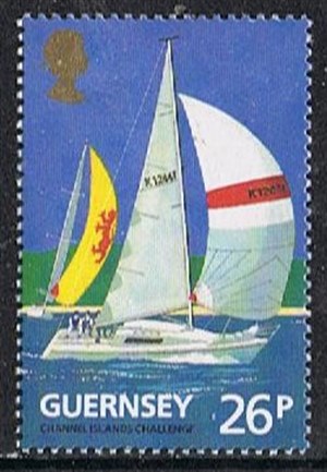 This race is depict on the 25p stamp. It is a handicap race between Guernsey and Jersey, which is open to any yacht of these two islands. In 1999, more than 150 yachts participated in this challenge. The sailboat depicted on this 26p stamp is most similar to a Sigma 33 fast sail cruiser yacht, designed by David Thomas from the U.K. in 1979.