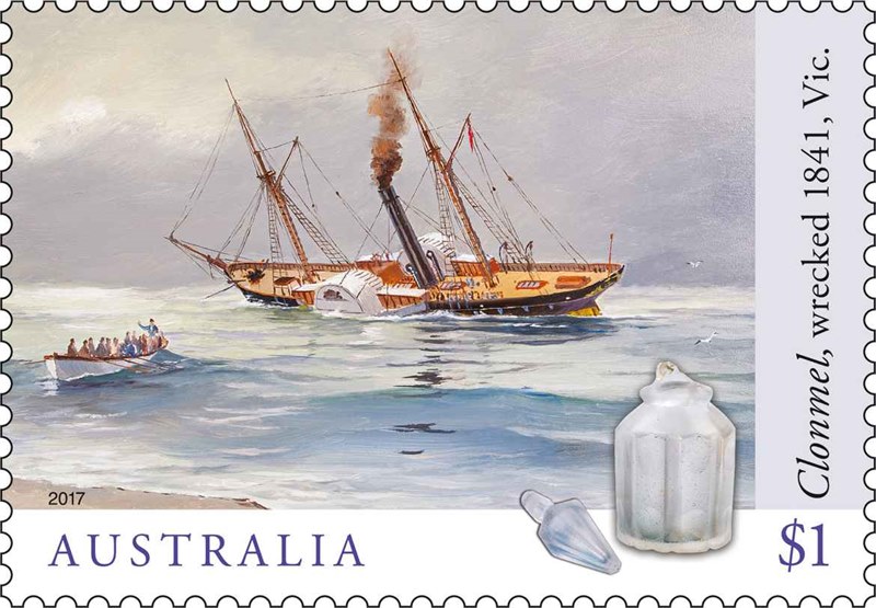 The painting of the CLONMELis by maritime artist Ian Hansen. The crystal decanter and stoppers, which symbolise the luxurious nature of the ship, are part of the Heritage Victoria collection.