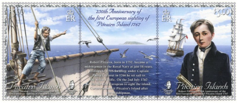 250 years ago on July 2nd 1767, a young boy high in the crow’s nest of the HMS SWALLOW, shouted "Land Ahoy" and Pitcairn's Island was first sighted by a European. Midshipman Robert Pitcairn, aged just 15, was praised by his captain, Philip Carteret, and had the Island named after him. History poses the question that in 1606 the Portuguese explorer Pedro Fernandez de Quirós first sighted Henderson Island and possibly Pitcairn but the consensus is that this may have been a sighting of another of the Pitcairn Group. Robert Pitcairn's sighting has stood and the Island remains a British Overseas Territory.