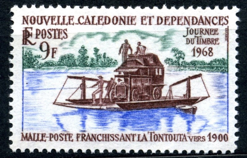 New Caledonia issued in 1968 one stamp of 3F for the “Stamp Day” which shows us the ferry across the Tontouta River in New Caledonia around 1900.