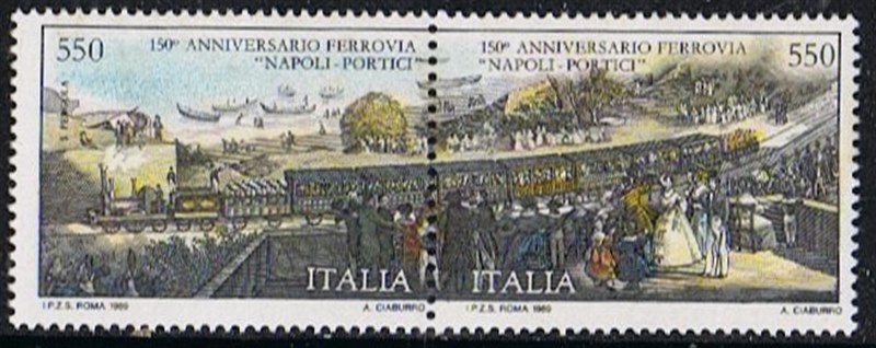 This two stamps issued by Italia in 1989 have been designed after a painting made by Fergola Salvatore: https://en.wikipedia.org/wiki/Salvatore_Fergola.
