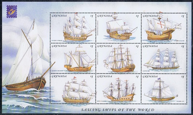 In 2001 Grenada issued a sheet “Sailing Ships of the World” and from the left to the right are shown: