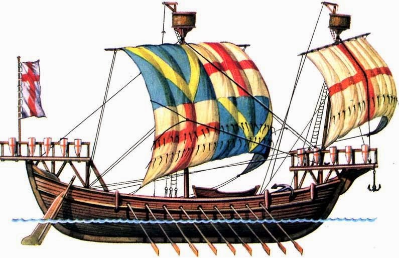This ships sailed from England to the Mediterranean, the type was derived from the knarr.