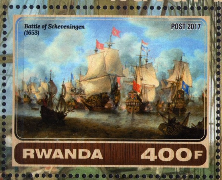 The ship in the centre of the stamp with the Dutch flag flying is the BREDERODE, Tromp’s flagship.