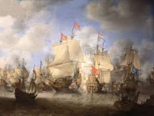 31 July off Scheveningen both fleets met around 06.30 a.m. and the battle commenced. At 11.00 the Dutch suffered a major setback when Admiral Tromp was struck by a stray bullet and mortally wounded.