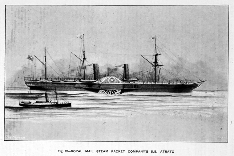 Throughout her career of 17 years under the Royal Mail house-flag the Atrato proved to be a popular and successful ship. However with the advent of screw propulsion, few of the paddlers ran their full time of service and the Atrato was broken up in 1870. Her name was revived in 1888 with the appearance of a steel screw steamer built by R. Napier at Glasgow, which remained in service until 1912.
