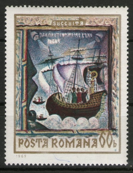 In 1585 the monastery of Sucevitsa was built, the outer walls of which were also decorated with frescoes. Like other monasteries, Sucevitsa combines elements of Byzantine and Gothic architecture, and frescoes use stories from the Old and New Testaments. Probably, it was the last monastery, decorated in this way. Frescoes date from the beginning of the 17th century. Sucevitsa differs from other monasteries in that here not only monks lived, but also knew. In 1969, the Romanian Post issued a stamp depicting a medieval carraсk ship depicted on a fresco of a monastery. For more details about carrack see: viewtopic.php?f=2&t=10705