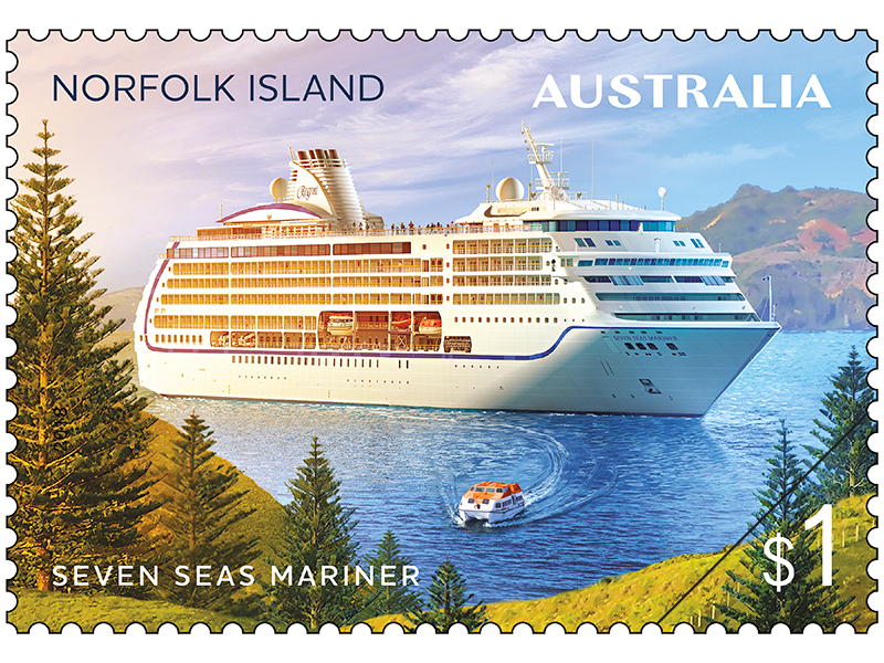 Norfolk Island has issued two stamps and a MS which depict cruise vessel who has visited the island.