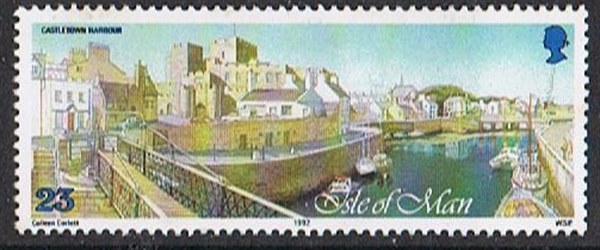 37p Port St Mary, Port St Mary is the principal harbour in the South of the island. It handles coastal vessels, supports a buoyant fishing industry. The stamp shows fishing vessels, cabin cruisers and yachts.