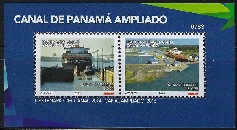 Panama issued in 2018 four stamps and a miniature sheet for the Panama Canal Expansion.