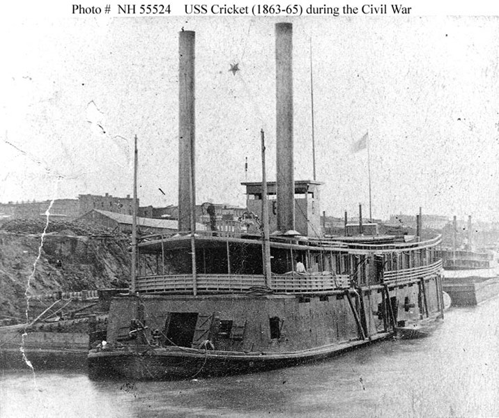 River expeditions off the Mississippi River: In August 1863 she joined USS LEXINGTON and USS MARMORA in an expedition up the White River. CRICKET continued into the Little Red River and on 14 August captured the last two Confederate army transports in the area, KASKASKIA and THOMAS SUGG, returning to the Mississippi River under frequent musket fire from Southern troops ashore. In November and December 1863 CRICKET convoyed troop transports on the Tennessee River and cleared the river banks of guerrillas, as she supported Union Army movements. She then joined the naval forces on the Red River Station, and participated in an expedition up the Black and Ouachita Rivers in Louisiana from 29 February to 5 March 1864, supporting the Army.