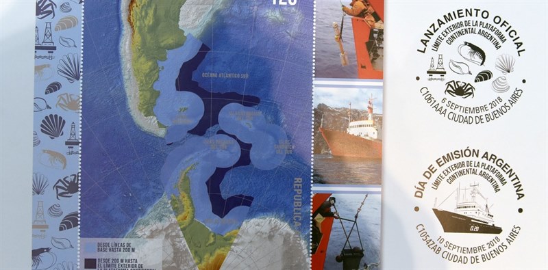 The survey and research vessel depict on the stamp is the PUERTO DESEADO.