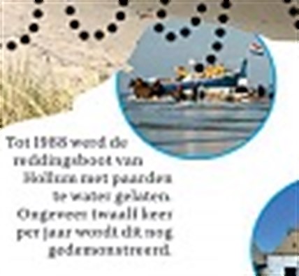 The Dutch Post issued in 2019 a miniature sheet in the Beautiful Netherland series, which shows in the margin the lifeboat of Hollum pulled by horses during launching from the beach.