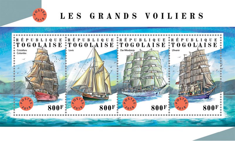 Togo issued in 2018 a sheet with four tall ships and a miniature sheet with three tall ships.