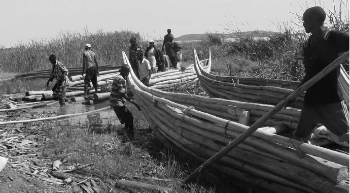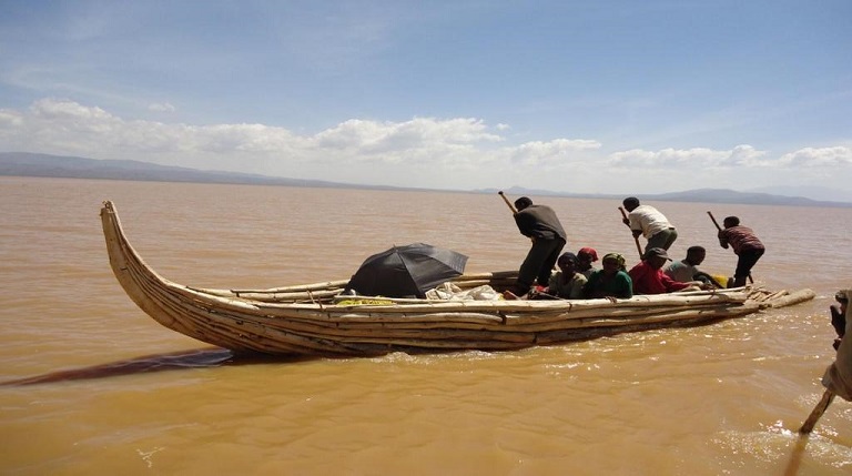 The Micronesian stamp depicts the HOBOLO- boat on Lake Abaya in Ethiopia. Different nations live on the shores of the lake, building similar boats under various names. Different nations live on the shores of the lake, building similar boats under various names. Bayso people Giddiccho island have traditional boat- WOLLABO, a smaller kind is called FAAK’O .All are made of local wood only. The logs are made from the very light and spongy Ambatsh tree. Wooden nails are cut and made from a very hard wood (acacia) and used to link the logs together. Each different logs a wollabo has its own name.The boats are between 5 and 7meters long, and about 1,5meters wide. Due to their shape, the boats should more correctly be called floats, and they are not closed on all sides, but open at the back and there is also space between the different logs. Yet, as the wood is so light, the boats cannot sink and are very safe. The traditional boats are mainly used to regularly transport people from the island to the shores to visit merkets in Mirab Abaya (western shore of lake).Smaller paddles are used for floats. Researcher Haberland saw boats from 13 to 16 feet in length, made of extremely light planks of white wood, which can carry up to 12 people, which were mainly used by Haruro’s people (From the island of the same name) to transport hippo meat. The boats were called HOBOLO (obolo). As a mover, used the paddle and pole. The form and method of paddling resemble the Venetian gondola. Sometimes boats were built from papyrus, cane, reed, depending on the size and purpose.