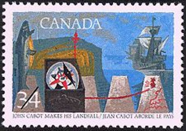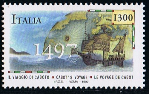 June 24. 1947, was the 450th anniversary of Cabot's discovery, and a single 5 cents stamp was issued by Newfoundland. It depicted the navigator and some of his ship's company looking from the Matthew's deck at Cape Bonavista.