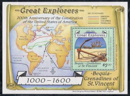 There has been some adverse criticism about spelling the name of Cabot's vessel on these stamps with two "T's' — Matthew. Actually, it is only a modernisation of the old name. The Bristol Customs records of 1503 refer to "the bark called the Mat hewe." An earlier account records: " 1496-7. This year on St. John the Baptist's day the land of America was found by the Merchants of Bristow in a shippe of Bristow, called the Mathew; the which ship departed from the port of Bristow the second day of May and came home again 6th of August next following." I have also seen the ship's name as Matthewe. So, with Shakespeare, one can only ask "What's in a name?"