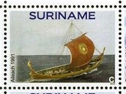 A reproduction of a 16 oar Highland galley, the AILEACH, was built in 1991 at Moville in Donegal. It was based on representations of such vessels in West Highland sculpture. Despite the good seagoing performance of the vessel, its design has been described as misleading because of an over-reliance in the plan on cramped sculptural images. The vessel was designed with a high, almost vertical, stern and stem. It proved difficult to fit in more than one rower per oar and the thwarts were too close together. Less constricted images from the fourteenth and fifteenth centuries show vessels which are longer and larger.