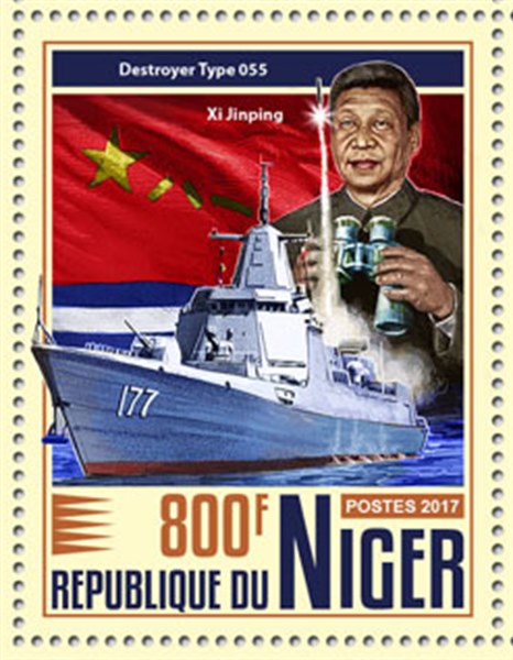 The stamp gives that a Chinese destroyer Type 055 is depicted, the vessel depicts on the stamp has the pennant no 177, I can’t find any destroyer in the Chinese fleet with this pennant no 177. Only one of the type 055 destroyers is in active service the NANCHANG, but she has pennant no 101. The pennant no 177 is wrong.