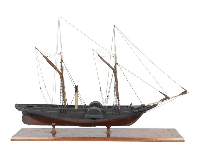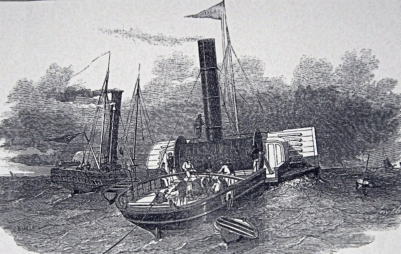 Built as a wooden side paddle packet by the Chatham Dry-dock for the Royal Navy.