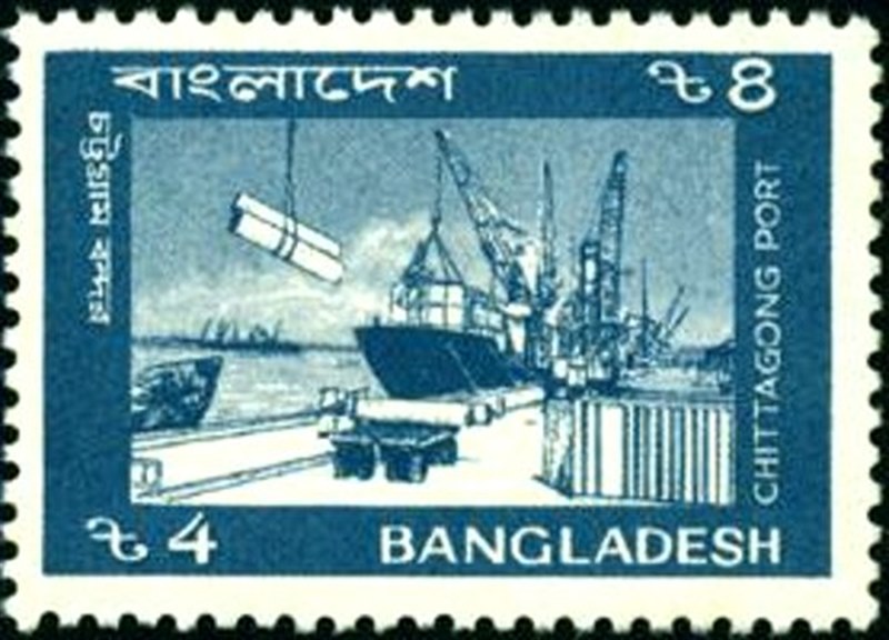 The stamp issued by Bangladesh in 1992 shows us cargo vessels alongside the quays in Chittagong port, the vessels have not been identified.