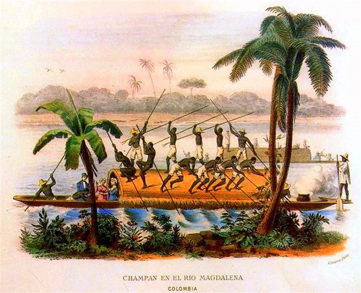 The source of information that served as the basis for this article was the stories made by foreign travelers of the 19th century, who wrote their impressions during the trips along the Magdalena River. This river was one of the most widely used routes at the time to connect the capital with the ports of Cartagena and Santa Marta, and various import and export products circulated through it, as well as the inhabitants of the Kingdom who traveled in canoes and champáns.