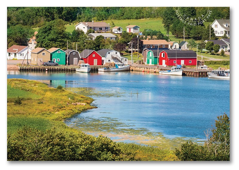 She is one of a set of 9 stamps issued by Canada in 2020 which show us the beautiful places in Canada. On the fishing village, I could not find more as what is given below.