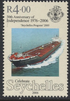June 2006 the Seychelles has issued a set of seven stamps for the 30th Anniversary of Independence 1976 – 2006, one stamp depict a ship, the inscription on the stamp gives “Seychelles Progress.”